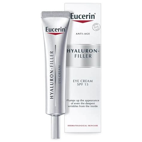 Su fórmula exclusiva ofrece múltiples beneficios antiedad. Con la combinación innovadora de Eucerin de Ácido Hialurónico de alto y bajo peso molecular y Arctiina (un activo que se ha demostrado que acelera la renovación del colágeno en las células de la piel), rellena visiblemente incluso las arrugas profundas para una piel más lisa y firme alrededor de los ojos y un aspecto radiante y despierto.