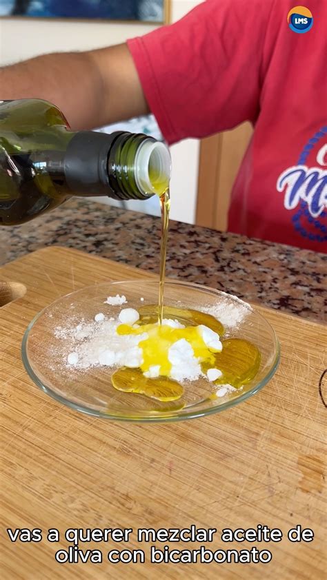 - En un recipiente, mezcla el bicarbonato de sodio con el aceite de oliva hasta obtener una pasta homogénea.