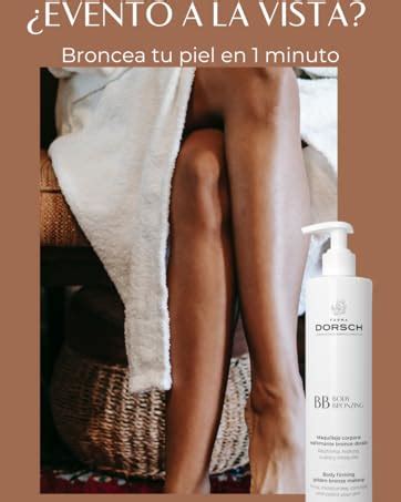Imagina lucir una piel radiante y bronceada en minutos. Con BB Body Bronzing de Farma Dorsch, este sueño se convierte en realidad. Este maquillaje corporal revolucionario te ofrece un tono bronce-dorado natural al instante, sin exposición al sol.