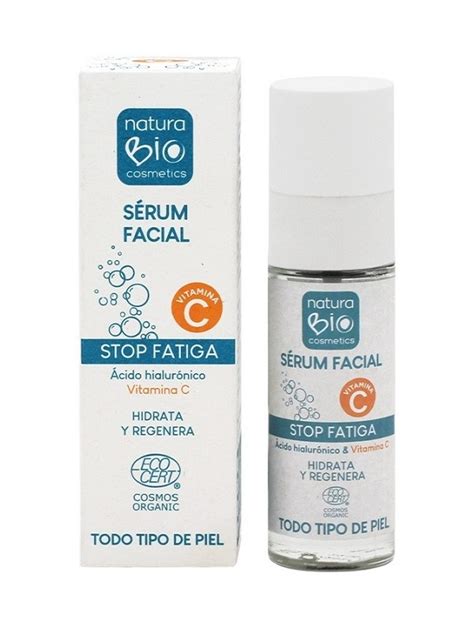Para complementar los beneficios del ácido hialurónico desde el interior, considera el sérum facial bio STOP FATIGA de NaturaBIO. Este sérum calma, hidrata y refresca la piel, formando una película protectora que minimiza las agresiones externas.