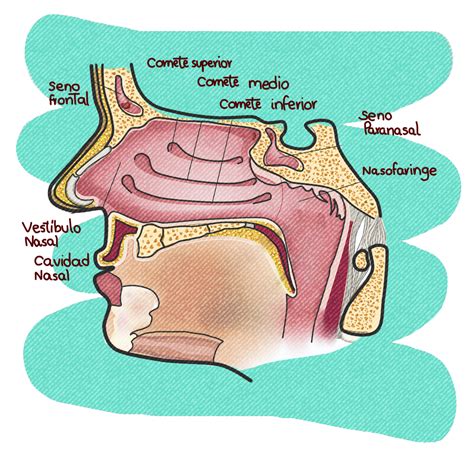 - Topografía Nasal: La nariz está dividida en tres tercios: superior (huesos nasales y apófisis frontal del hueso maxilar), medio (septum cartilaginoso y cartílagos laterales superiores) e inferior (espina nasal anterior del hueso maxilar, apertura piriforme del hueso maxilar y cartílagos laterales inferiores o cartílagos alares).