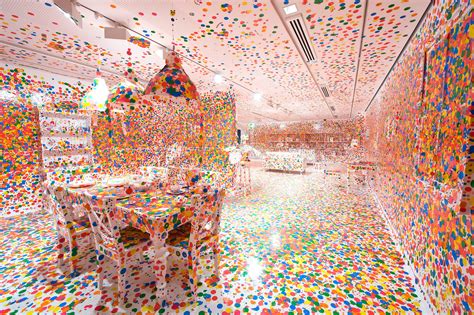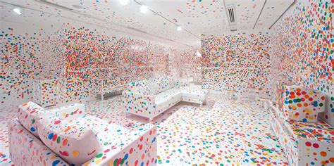 - Dots Obsession: Una serie de instalaciones que expanden los lunares y los espejos, añadiendo objetos inflables amorfos adaptados a cada espacio. Esta instalación envolvente y colorida es una de las obras más famosas de Yayoi Kusama y crea una experiencia sensorial única para los espectadores.