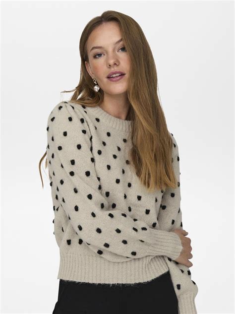 Los jerséis con estampado de lunares evocan alegría y juventud, recordando los lunares Polka de los años 50. Igual que entonces, hoy en día los puntos pueden ser elegantes y refinados, ¡aquí todo depende del tamaño! Cuanto más pequeños los puntos, más adulto es el estilo.