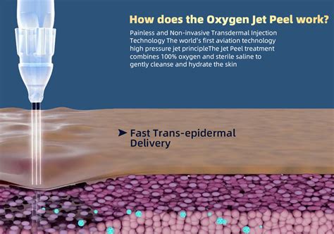 La máquina Hydrafacial Jet Peel (jet peel, que se traduce como exfoliación de la piel de chorro) crea una corriente dirigida de oxígeno, aire y un suero fisiológico especializado. Al estar bajo alta presión, esta corriente desarrolla una velocidad de sonido de hasta 320 m/s.