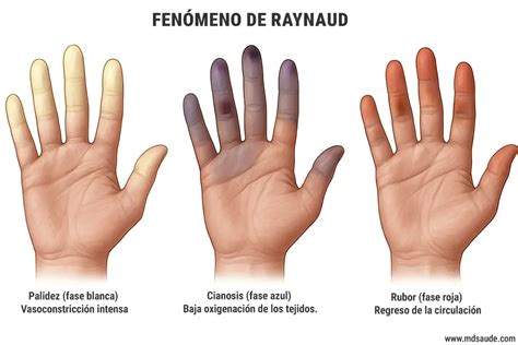 El color azul es también uno de los síntomas del síndrome de Raynaud, una enfermedad que causa sensación de adormecimiento y frío en algunas partes del cuerpo, sobre todo los dedos de las manos y de los pies y que suele deberse por el frío o el estrés. En este caso, las arterias pequeñas se estrechan y limitan el flujo de sangre a las zonas afectadas, provocando una sensación de adormecimiento y frío en esas zonas.