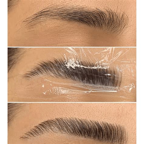 Durante el laminado de cejas, se utiliza una solución química suave para modificar la estructura de las cejas y mantenerlas en su lugar deseado. Primero, se limpian y preparan las cejas. Luego, se aplica una solución de laminado que suaviza y alisa los vellos de las cejas, permitiendo que sean peinados y moldeados en la forma deseada. Finalmente, se aplica una solución acondicionadora para nutrir y proteger las cejas. Se puede añadir tinte de cejas acorde con tu color natural del vello para aportar más profundidad a la mirada.