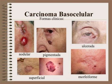 La manera más típica es una pequeña cicatriz abultada y dura que parece una gota de cera, algo mas traslúcida, con pequeñas venitas en su superficie, que no duele y que puede llegar a sangrar espontáneamente, para curarse con una pequeña costra y volver a sangrar nuevamente. Crecimiento lento que se aprecia en meses. Se localiza casi siempre en la cara y sobre todo en la zona de la nariz, aunque puede afectar cualquier parte del cuerpo. Si se deja evolucionar puede llegar a ser muy destructivo.
