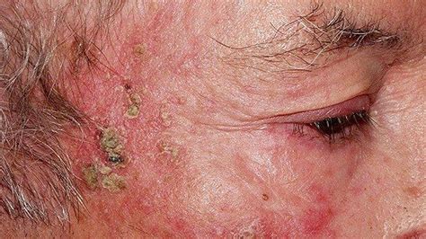 Suele presentarse como lesiones nodulares tipo "verruga", "pastilla" o "cuerno" de crecimiento más rápido, rojizas, consistencia dura, opacas y con ligera inflamación alrededor. En ocasiones, las células cancerosas se limitan a la epidermis (la capa más superficial de la piel) durante un tiempo, muestran una evolución más lenta, sin invasión.