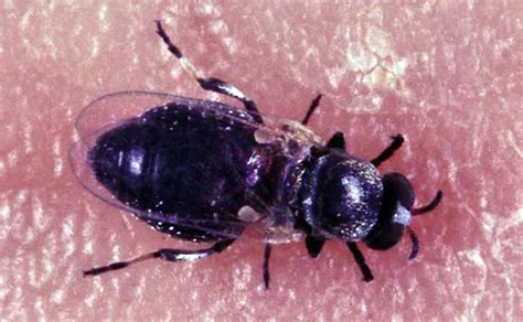 Los simúlidos son abundantes en época lluviosa y pican ferozmente en el día. Poseen una probóscide muy gruesa y succionan sangre de la piel traumatizada. El simúlido adulto y negro mide 2-3 mm y la longevidad media es un mes.