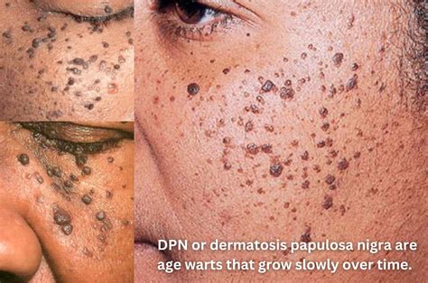 Los grupos de puntos marrones alrededor de los ojos, las mejillas y la nariz se conocen como dermatosis papulosa nigra, un tipo de queratosis seborreica no cancerosa que se presenta como protuberancias de color tostado, negro o marrón con aspecto ceroso. No son grupos de células que producen la pigmentación, denominados nevos. La dermatosis papulosa nigra es más común en mujeres de piel negra.