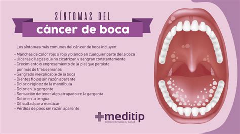 | Melanoma oral | Cáncer de piel que se desarrolla en la boca. | Metástasis a otros órganos si no se detecta a tiempo. |