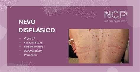 Un nevo displásico puede tener una mezcla de varios colores, de rosado a marrón oscuro. Suele ser chato, con una superficie lisa, algo escamosa o pedregosa. El borde es irregular y quizás se funde con la piel que lo rodea. Un nevo displásico podría surgir en cualquier parte del cuerpo, pero suele aparecer en las áreas expuestas al sol, como la espalda.
