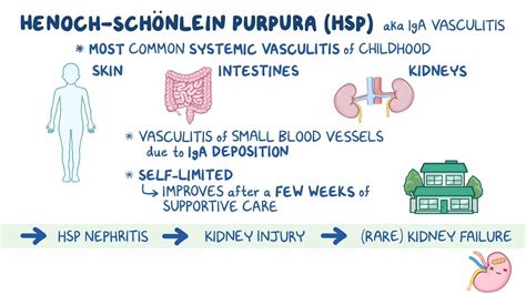 - Afectación Renal: Un 30-50% de los pacientes con VIgA/PSH desarrollarán una glomerulonefritis (PSHN), pudiendo hacerse crónica y dar lugar a un daño renal permanente, motivo por el que es el factor pronóstico a largo plazo más importante de la enfermedad.