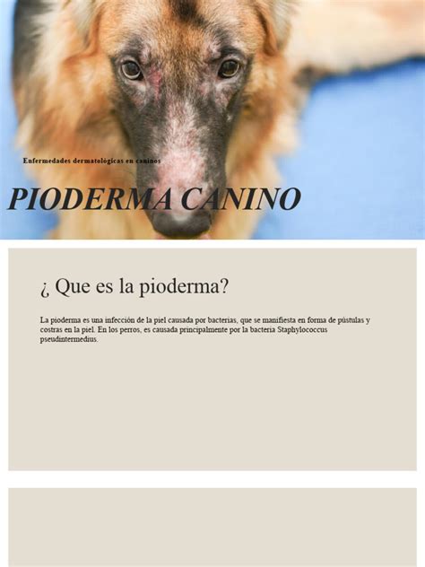 La pioderma puede presentarse de diversas formas, dependiendo de la causa. La pioderma suele estar causada por la bacteria Staphylococcus (o estafilococos). Algunas de las causas comunes incluyen: