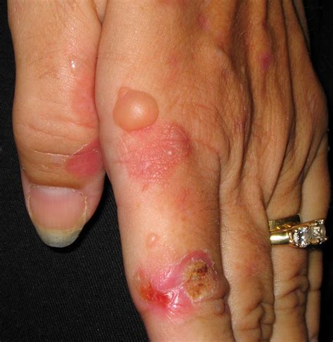 En ambos casos, la formación de ampollas en las membranas mucosas suele darse en la boca, los ojos y la vagina y a veces en los tractos digestivo, respiratorio y urinario. Ambas enfermedades son potencialmente mortales.
