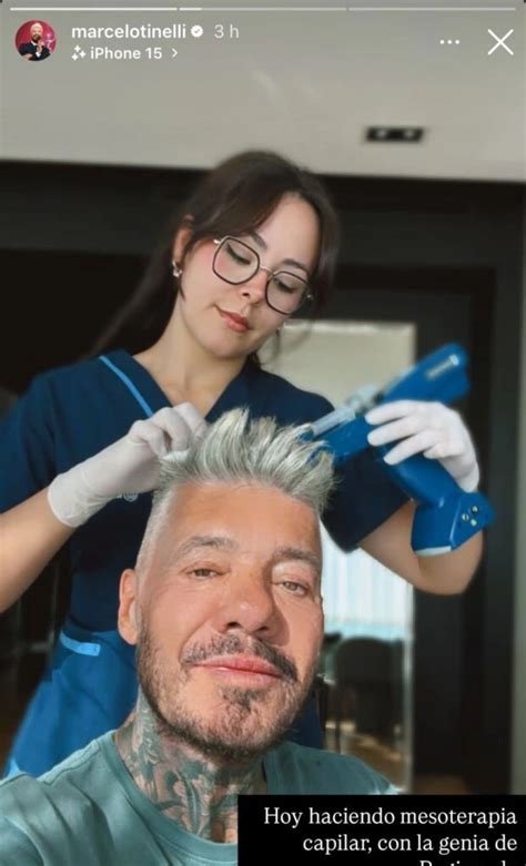 A través de sus historias de Instagram, Tinelli reveló que se está realizando mesoterapia, un tratamiento capilar que ayuda a evitar la calvicie fomentando el crecimiento del cabello. "Hoy haciendo masoterapia con la genia de Regina", escribió el exconductor de América TV a través de sus redes sociales, sin ningún tipo de vergüenza de contar que realiza este tratamiento.