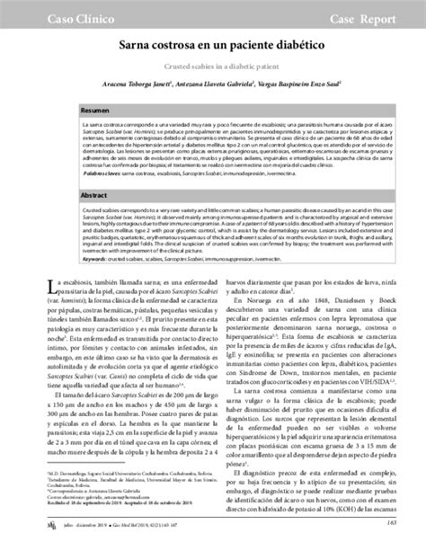 La sarna costrosa es la presentación más rara de esta enfermedad y constituye una forma clínica con una gran carga infectante. Clínicamente, presenta múltiples lesiones costrosas e hiperqueratósicas, donde habitan numerosos ácaros. La sarna costrosa también conocida como sarna noruega, escabiosis crustosa, sarna hiperqueratósica o sarna de Boeck, es la presentación más rara de esta enfermedad.
