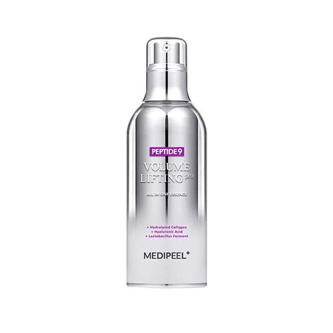 MEDI-PEEL Peptide 9 Volume Lifting All In One Essence Pro es un producto especialmente diseñado para el cuidado de la piel que presenta cambios relacionados con la edad. Su fórmula avanzada está diseñada para nutrir profundamente, reafirmar y devolverle a la piel un brillo saludable y juvenil.