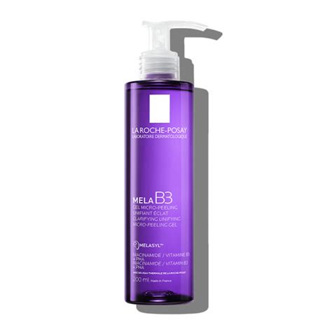 La Roche-Posay Mela B3 Micro-Peeling Gel, es un limpiador Microexfoliante renovador, iluminador y unificador del tono de la piel, sus activos actúan de forma intensiva, ayudando a potenciar y preparar la piel para los tratamientos despigmentantes. Contiene Niacinamida, Vitamina B3, PHA y Agua Termal La Roche.