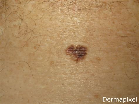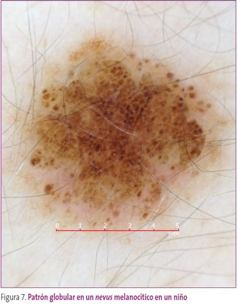 En el melanoma, las estructuras individuales son atípicas, irregulares y asimétricas. En los pacientes con múltiples nevus, las características dermatoscópicas son similares en todos ellos.