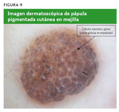 Estructuras bien demarcadas generalmente de color marrón y diámetro superior a 0,1 mm. Corresponden a nidos de melanocitos pigmentados benignos o malignos, situados generalmente en la epidermis inferior, la UDE o la dermis papilar.