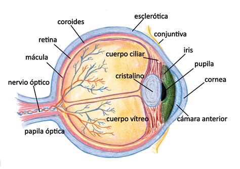 - Iris: La parte de color del ojo. Se observa a través de la córnea transparente. La pupila está en el centro del iris y cambia de tamaño para que pase más o menos luz al ojo.