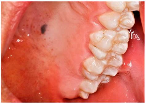 - Tatuajes de amalgama: Tatuajes en el tejido de la encía provocados por empastes u obturaciones con amalgama de plata.