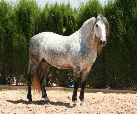 Caballo PRE tordo, raza con alta predisposición a melanomas.