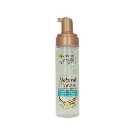 Garnier Natural Bronzer, gracias a su activo autobronceador 100% de origen vegetal, ofrece una solución inmediata para un bronceado natural y luminoso. Nuestra primera mousse autobronceadora transparente elaborada con un 92% de ingredientes de origen natural para un bronceado intenso en tan solo una aplicación.