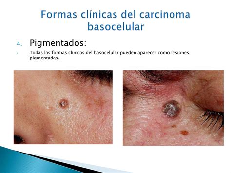 | Carcinoma Basocelular | Muy rara | Extirpación quirúrgica | Generalmente curable con extirpación completa |