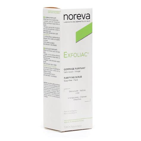 Noreva Exfoliac Purifying Scrub Soap-Free 50ml es un producto exfoliante purificante diseñado para combatir las imperfecciones y alisar la piel. El exfoliante limpiador Noreva Exfoliac Purifying Scrub te ayudará a prevenir la aparición de imperfecciones en la piel gracias a su acción profunda y a sus efectos exfoliantes. No solo limpia todas las impurezas de la piel, sino que también elimina las células cutáneas muertas que tienen tendencia a obstruir los poros, causando puntos negros o dejando la piel con un tono apagado y sin vida.
