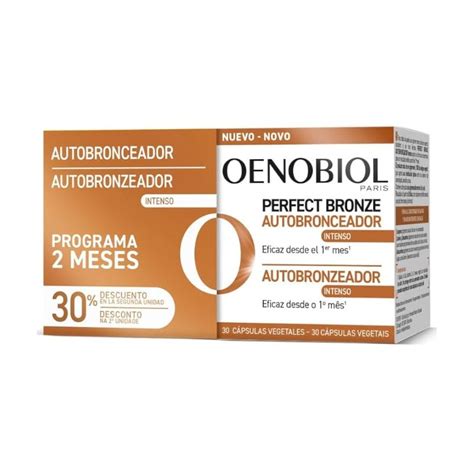 OENOBIOL AUTOBRONCEADOR enriquecida con extractos vegetales y cobre que contribuyen a la pigmentación de la piel. Después de 28 días, proporciona un bronceado uniforme, sin manchas ni marcas en la piel.