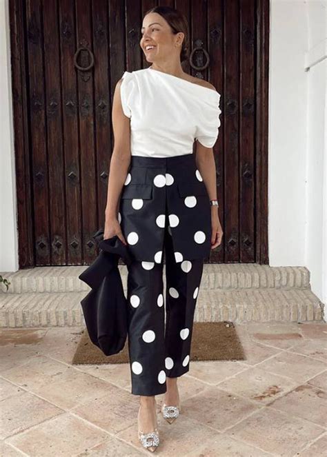 Una gran ventaja es que el estampado lunares no pasa de moda, no tiene edad, y se puede llevar en todas las estaciones del año. Con una camisa de algodón blanca, o una blusa elegante para trabajar, el pantalón de lunares negro y blanco es la alternativa más acertada.