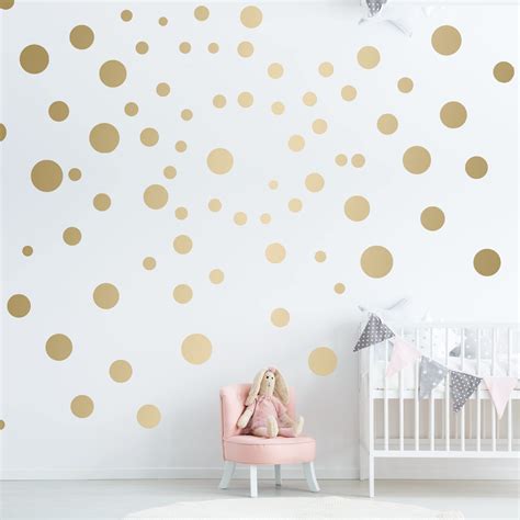 Me gustan especialmente estos lunares dorados o cobrizos que funcionan igual de bien junto a una cuna o en un vestidor con un plus de elegancia.