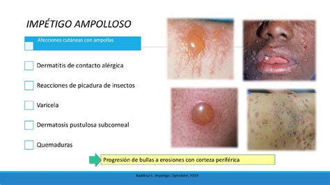 Infección superficial, muy contagiosa y frecuente, que puede adoptar una forma ampollosa o no ampollosa (70% de los casos). Aparece en cualquier edad, con mayor incidencia en menores de 5 años, disminuyendo drásticamente tras los 14 años. No hay diferencia entre hombres y mujeres, y las epidemias son posibles y más frecuentes al inicio del verano.