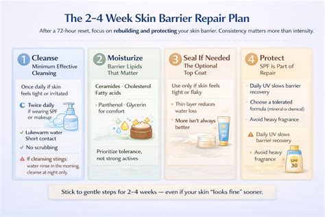 Los alfa-hidroxiácidos (AHA) como el ácido glicólico o láctico en bajas concentraciones, o mejor aún, los PHA (poli-hidroxiácidos), pueden ser efectivos para exfoliar suavemente sin irritar la piel. La exfoliación no debería realizarse más de una o dos veces por semana, y posiblemente incluso menos frecuentemente para pieles muy sensibles o dañadas. Evitar Exfoliantes Físicos Abrasivos: Los exfoliantes con partículas grandes o ásperas pueden causar microdesgarros en la piel, lo que puede agravar el daño en la barrera cutánea.