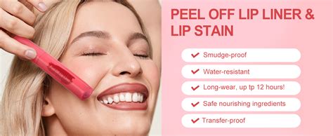 El labial peel-off crea una película sobre la piel de los labios que se retira después de unos minutos. Tras retirar el producto, los labios quedan teñidos con un aspecto natural, como si el color fuera propio del labio.