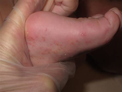 - Granos, ampollas y pequeñas úlceras con costras.