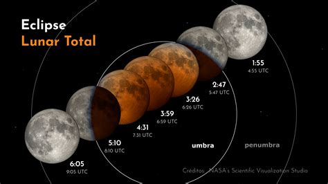 La duración de un eclipse lunar está determinada por sus contactos, que son las etapas clave del fenómeno: