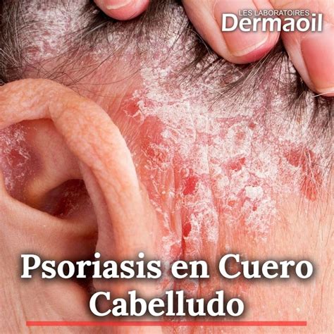 La psoriasis de cuero cabelludo, es muy frecuente. Se presenta en forma de descamación seca muy adherida (caspa gruesa) sobre una zona roja del cuero cabelludo y suele producir picor. Se puede confundir con la dermatitis seborreica.