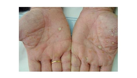 - Eccema dishidrótico: Caracterizado por vesículas en palmas y plantas.