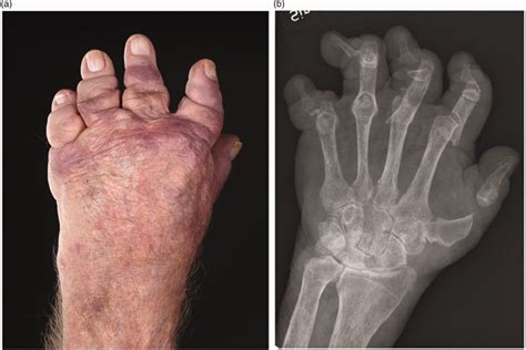 Cualquier forma de psoriasis puede acompañar a la artritis. La AP es una enfermedad inflamatoria articular y extraarticular. La mayoría de pacientes presenta mono, oligo o poliartritis de grandes o pequeñas articulaciones. Normalmente es una enfermedad asimétrica, a diferencia de la AR, y se distingue por la afectación de las articulaciones IFD. Menos del 5% de los pacientes presentan una forma grave, la artritis mutilante (fig. 1).