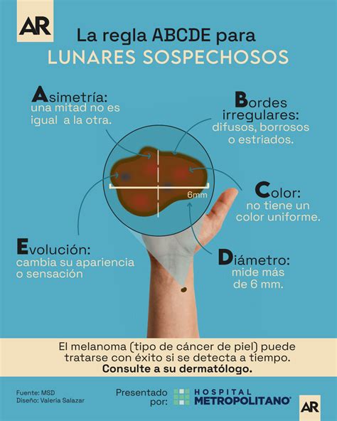 Un nevus clínicamente atípico es un lunar que presenta cambios que lo hacen sospechoso y motivan que sea visto por un dermatólogo. Estos son los signos ABCDE: