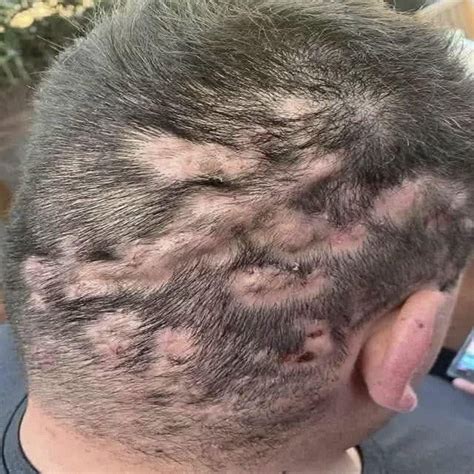- Zonas inflamadas o irritadas, sobre todo donde el cabello es más grueso o en áreas cercanas a la frente y detrás de las orejas.