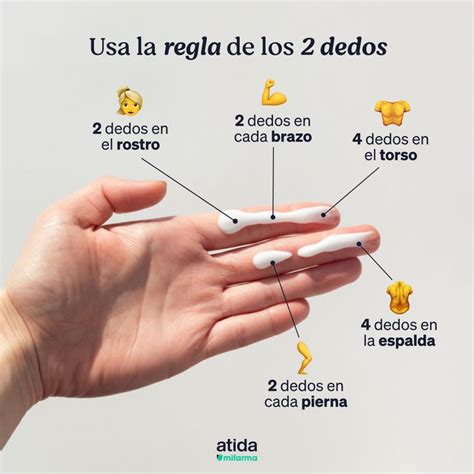 La regla de los dos dedos consiste en aplicar dos líneas de crema solar en dos dedos (índice y medio) desde la punta hasta la base de los dedos y aplicar sobre el rostro. Se recomienda hacerlo 30 minutos antes de la exposición al sol. Y luego, renovar la aplicación del protector solar cada dos horas, evitando siempre la exposición solar entre las 12 horas y las 16 horas.