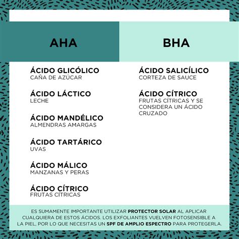 - Ácidos AHA: Estos ácidos actúan eliminando las células cutáneas muertas mediante la exfoliación, ayudando a acelerar la regeneración de la capa externa de la piel.