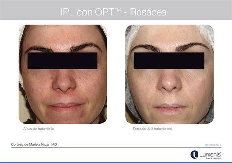 | Luz Intensa Pulsada (IPL) | Emisión de pulsos de luz para tratar el enrojecimiento y los vasos dilatados. | Rosácea con enrojecimiento facial persistente. |