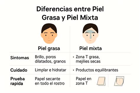 La piel grasa y la mixta pueden parecer muy similares, pero es importante saber la diferencia para poder cuidarlas adecuadamente. Si tienes la piel grasa, notarás los brillos, poros dilatados, granos, etc. en la mayor parte del rostro. En cambio, en la piel mixta aparecerán en la zona T, mientras que el resto del rostro puede tener zonas secas.