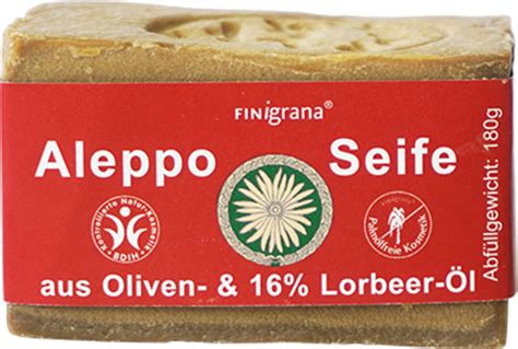 El jabón de Alepo es un jabón tradicional originario de la ciudad de Alepo, en Siria. Se elabora según una receta ancestral de 4000 años de antigüedad y se seca durante 7 a 8 meses. Su composición es totalmente natural, conteniendo únicamente aceite de oliva, aceite de bayas de laurel, sosa y agua.