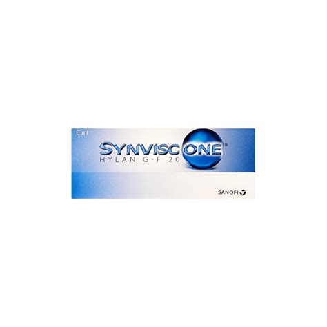 Synvisc one (Hylan GF 20) es una solución viscoelástica de ácido hialurónico recomendada para aliviar el dolor causado por la osteoartritis, una condición que causa "desgaste" en la articulación de la rodilla. Synvisc one (Hylan GF 20) ha demostrado ser efectivo cuando se administra en todas las etapas de la enfermedad articular.